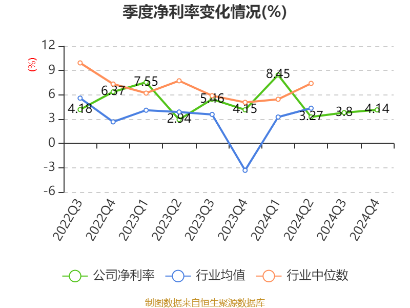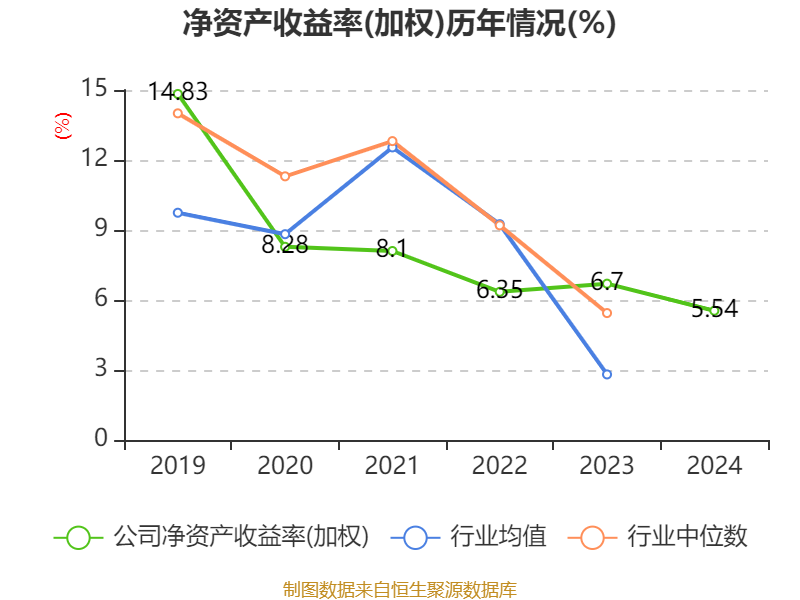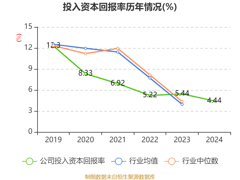 数据显示,2024年公司加权平均净资产收益率为5.54%,较上年同期下降1.16个百分点。公司2024年投入资本回报率为4.44%,较上年同期下降1个百分点。