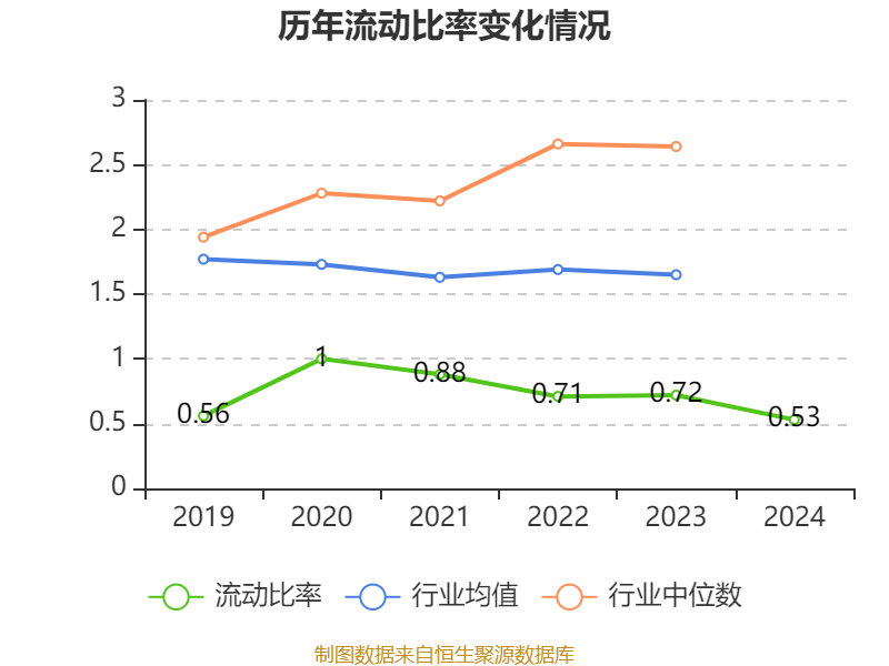 2024年,公司流动比率为0.53,速动比率为0.49。