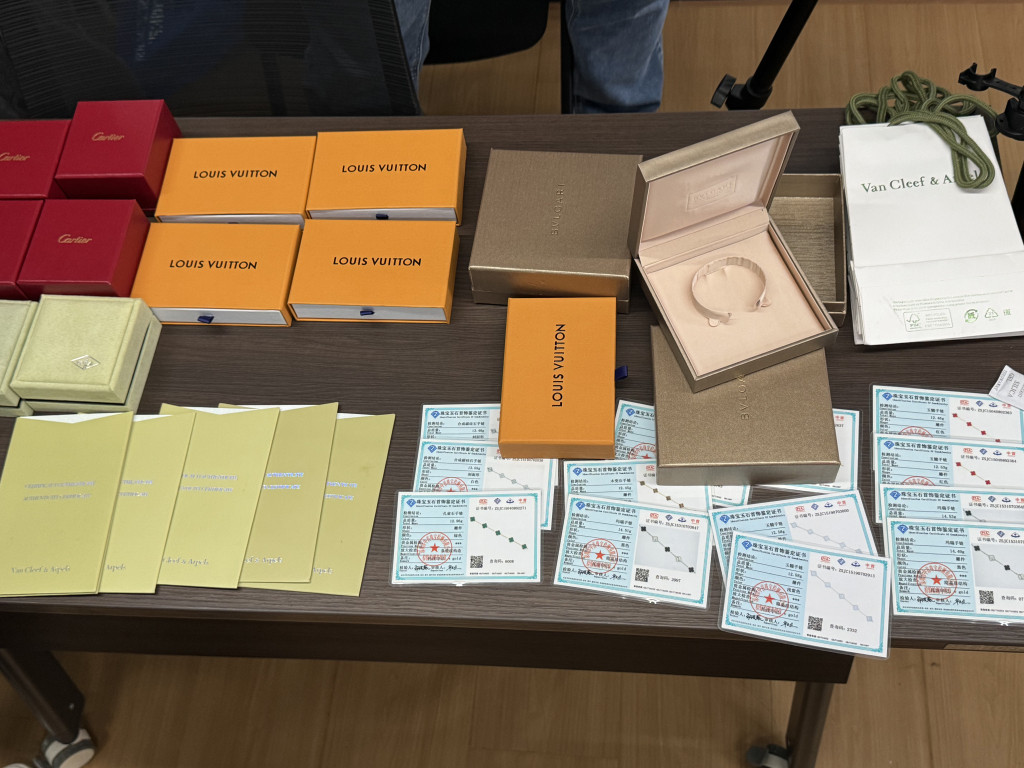 今年6月,历峰集团发现多个开设于上海宝山区的短视频平台账户直播间内,主播与商家打着“绝对保真”“支持专柜验货”的旗号,销售假冒的品牌首饰产品。这些假冒首饰质感粗糙、色泽暗淡,与正品相差甚远,历峰集团随即向宝山“蓝鲸”护企工作站求助。