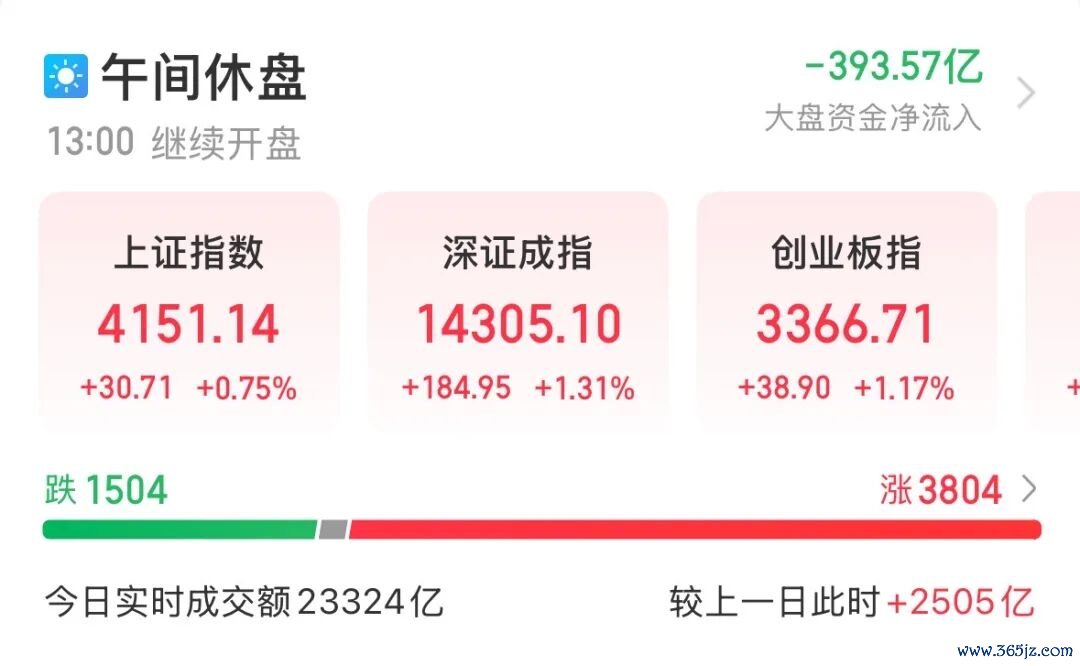 1月12日早盘,A股主要指数集体上涨。截至午间收盘,上证指数涨0.75%,深证成指涨1.31%,创业板指涨1.17%,科创综指涨2.46%,北证50指数涨4.20%。沪深北三市半日成交额再度突破2万亿元,达23324亿元。