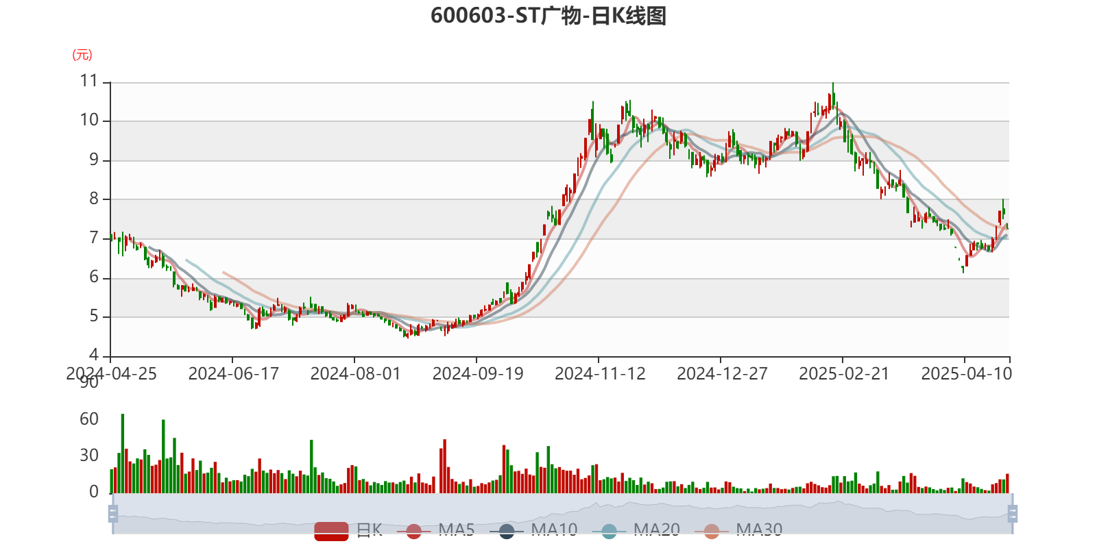 中证智能财讯 ST广物(600603)4月25日披露2024年年度报告。2024年,公司实现营业总收入37.37亿元,同比下降24.23%;归母净利润5.09亿元,同比下降12.76%;扣非净利润4.78亿元,同比下降3.26%;经营活动产生的现金流量净额为19.22亿元,同比增长71.33%;报告期内,ST广物基本每股收益为0.43元,加权平均净资产收益率为7.04%。