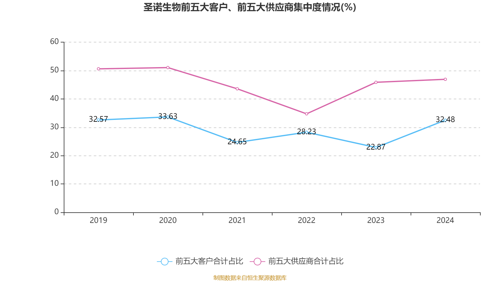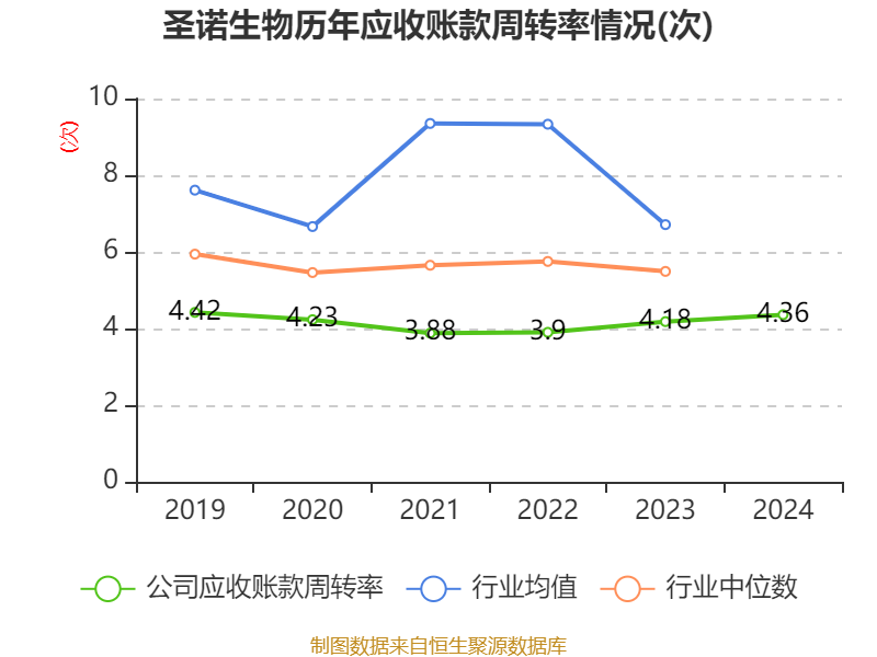 以4月24日收盘价计算,圣诺生物目前市盈率(TTM)约为63.6倍,市净率(LF)约3.46倍,市销率(TTM)约6.98倍。